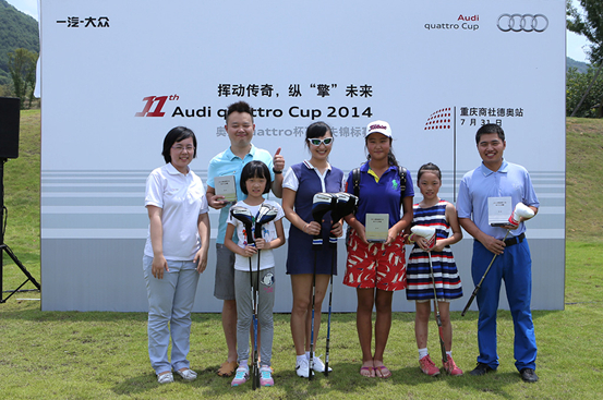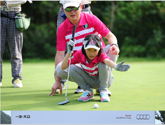 与以往奥迪quattro杯不同的是,今年的分站赛加入了亲子高尔夫9洞赛的环节,在上午9点,亲子赛正式打响,中午12:30参加亲子赛的选手们也参加了奥迪quattro杯的开球仪式,并在开球仪式上颁发了亲子赛的各奖项,冠军组由黎萍和袁铭蔚获得。