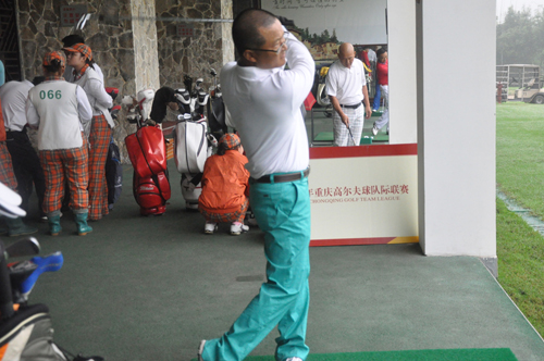 隆鑫地产杯·2014重庆高尔夫球队际联赛金鹰队VS常青藤鹰队和中渝队VS力帆置业队的比赛在风雨之中顺利进行。虽然冠军赛赛程过半,但是队员们丝毫没有懈怠,上午10点左右参赛球队队员陆续签到、练习,在上邦餐厅用完午餐后,队员们精神饱满迈入战场。最终,金鹰球队6:0胜常青藤鹰队、中渝球队4:2胜力帆置业球队,这也是金鹰球队与中渝球队再次同日取胜,各得3分。