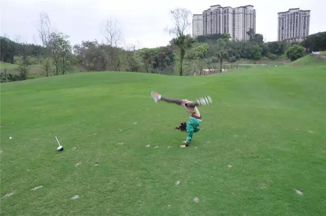 打高尔夫和翻跟头两不误