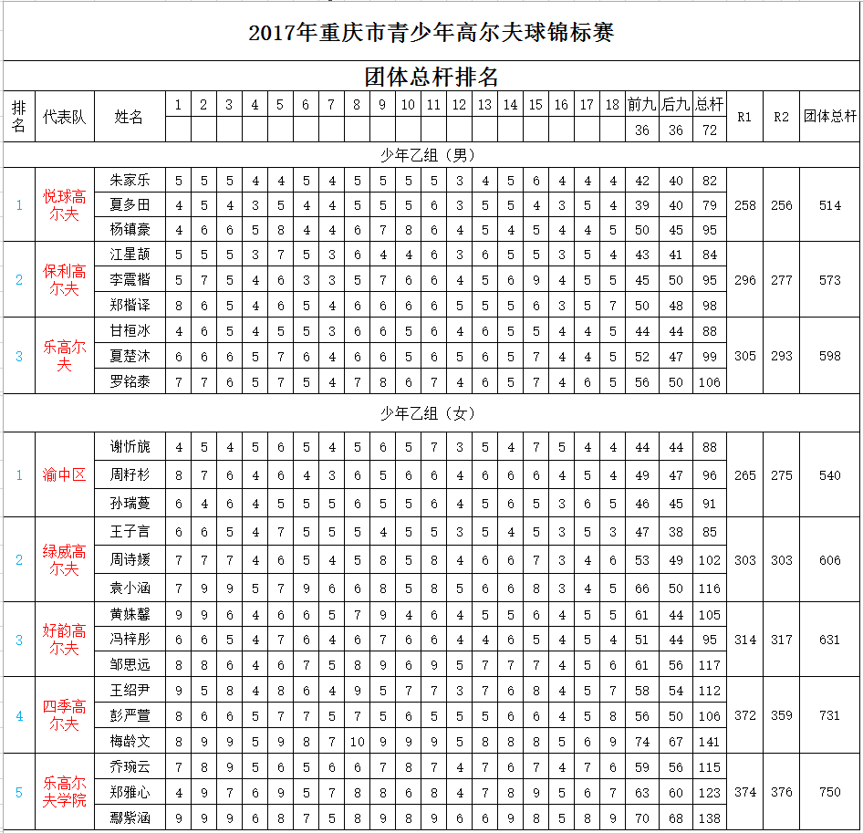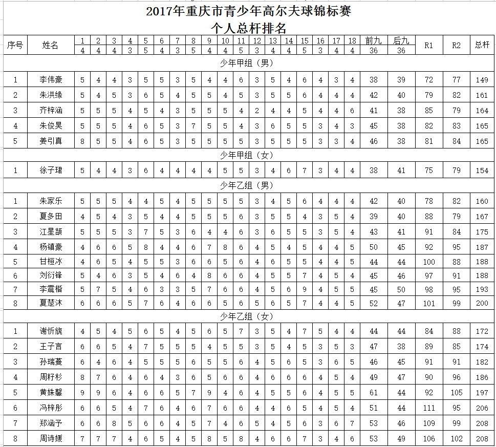 2017年重庆市青少年高尔夫球锦标赛在重庆上邦高尔夫球场经过两天紧张激烈的比赛圆满结束。