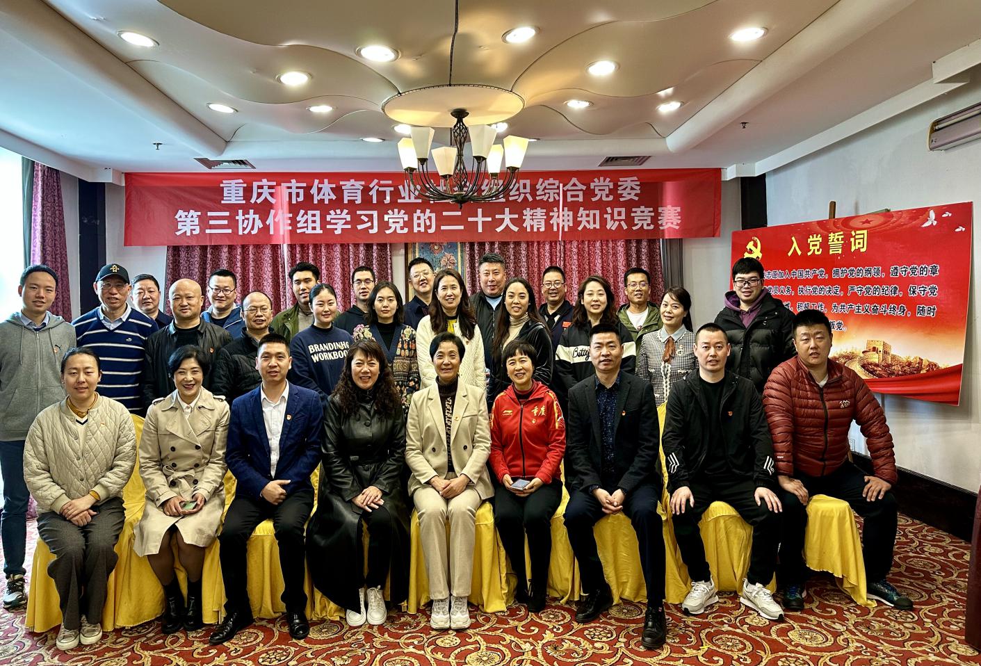 3月9日,市体育行业社会组织综合党委第三协作组组织开展了主题党日活动暨学习党的二十大精神知识竞赛。此次活动以“学习宣传贯彻党的二十大精神,推动体育社会组织健康发展”为主题,市体育行业社会组织综合党委副书记张焰、市体育行业社会组织第三协作组各成员单位支部书记或负责人、市体育行业社会组织各党建工作协作组组长、副组长单位负责人,市高尔夫球协会党支部党员及上邦体育俱乐部党员等共30余人参加本次活动。
