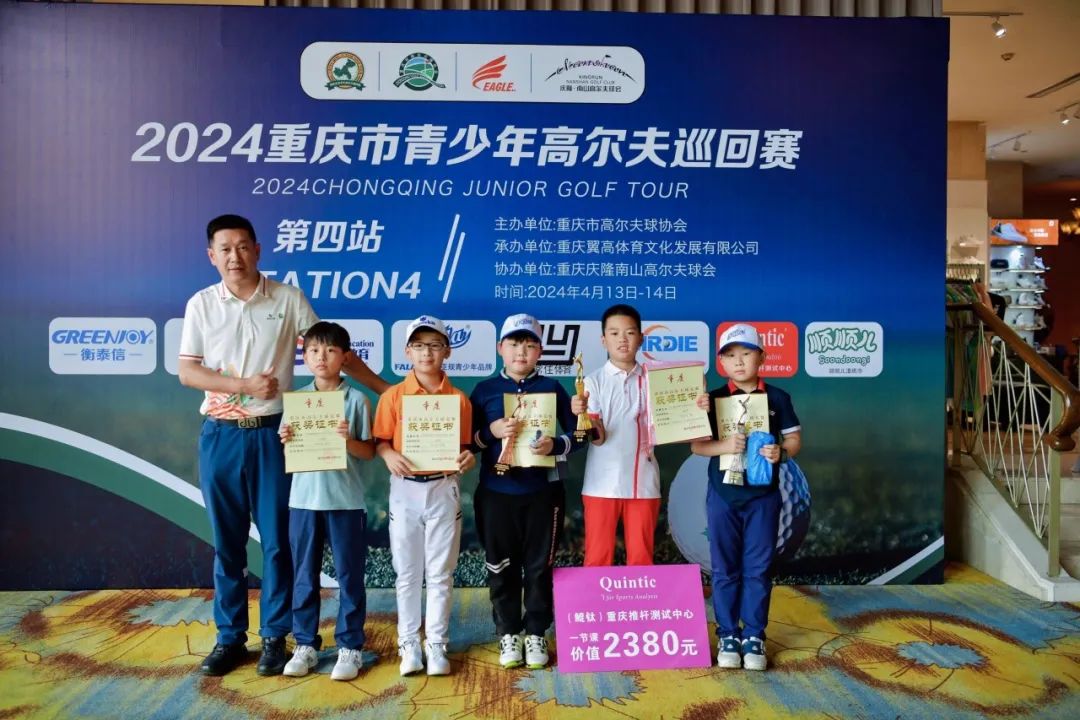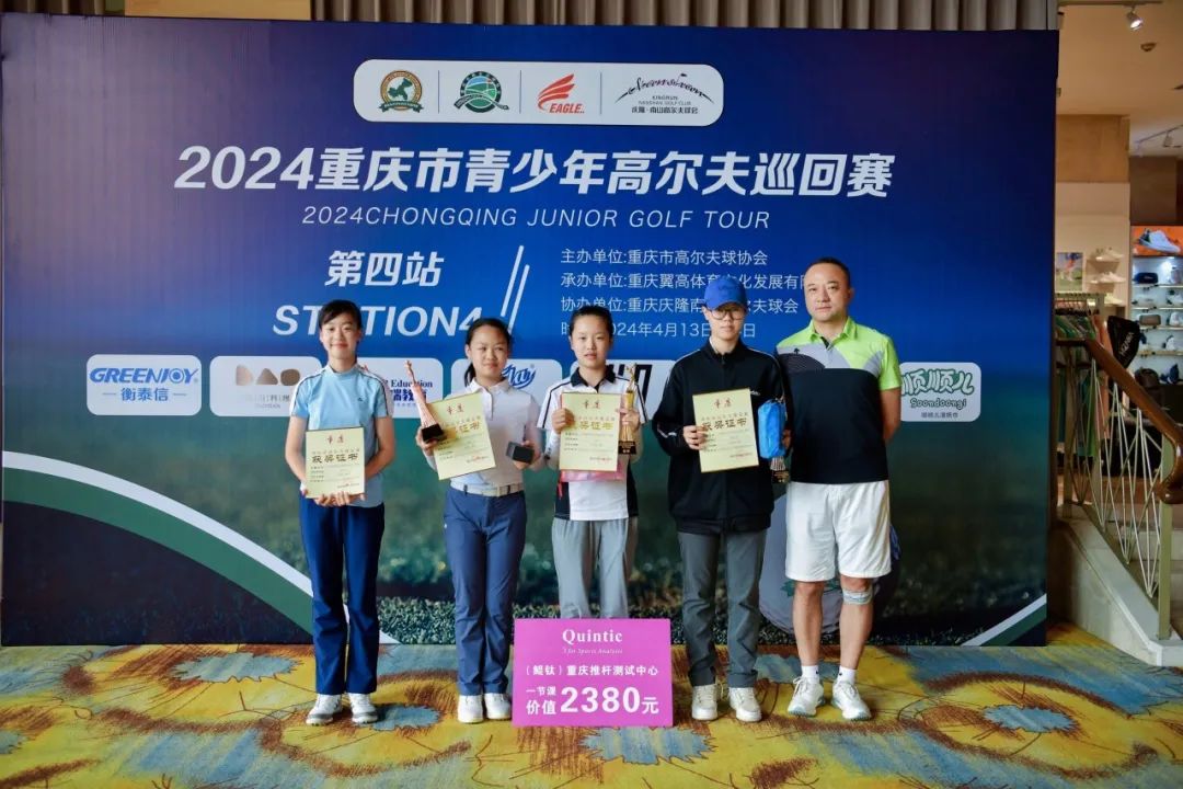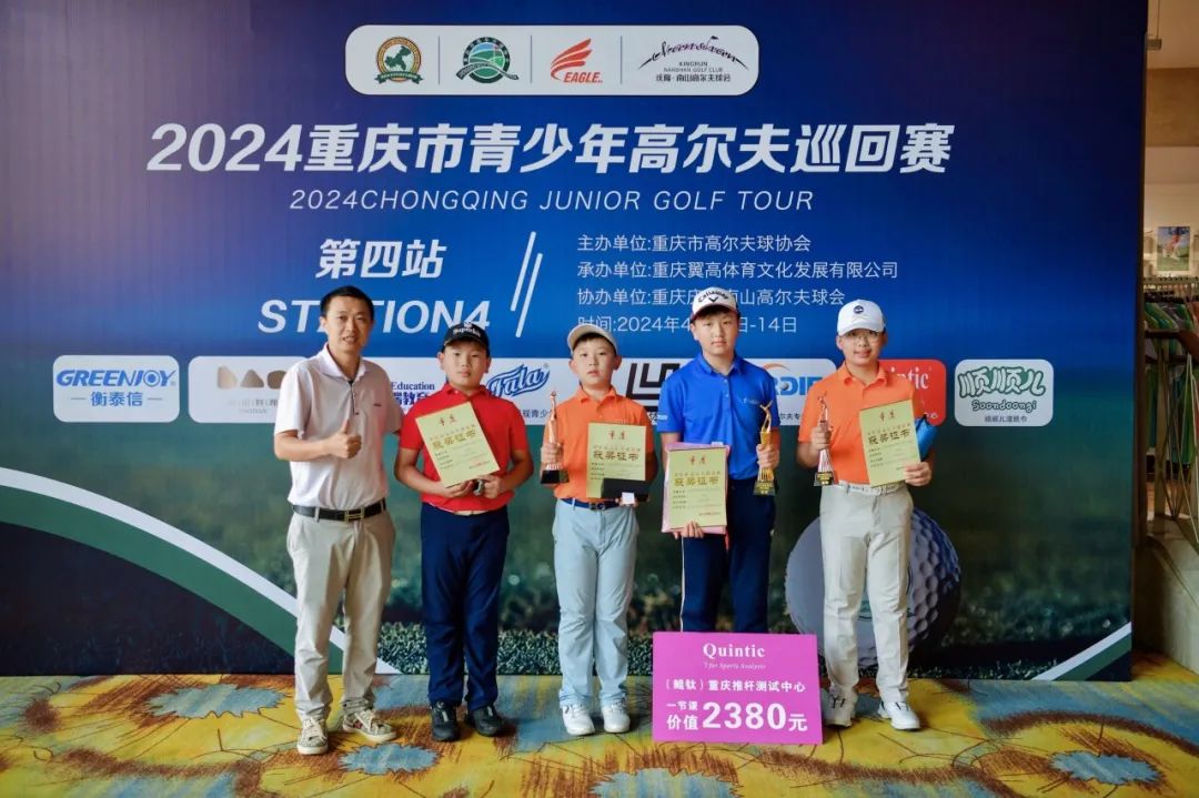 4月14日,由重庆市高尔夫球协会主办,重庆翼高体育文化发展有限公司承办的2024重庆市青少年高尔夫巡回赛第四站在重庆庆隆南山高尔夫球会圆满落幕,各组冠军的产生,他们分别是:男子A组冠军何宥呈、男子B组冠军李凯昊、男子C1组冠军潘昱燃、男子C2组冠军付凌赫,女子B组冠军漆妙、女子C1组冠军庄诒涵。