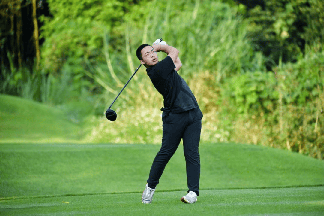 男子C组梅晋瀚表现抢眼,交出74杆(+2)的佳绩,成功领跑该组别,拿下第一。