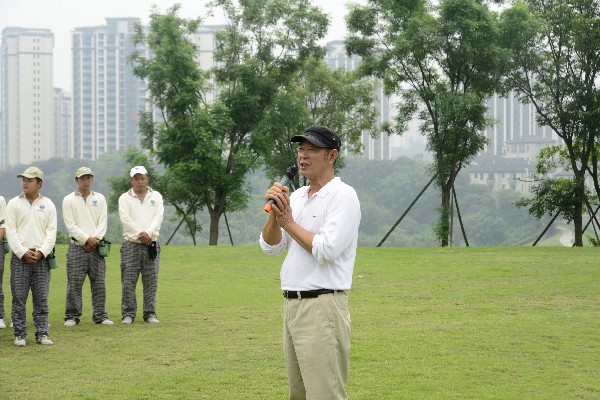 市高协常务副主席刘万毅激情洋溢的作赛前致辞,刘副主席首先代表高协对参与前期准备的球场主任及工作人员的辛勤劳动表示衷心感谢。他十分简洁地阐明了高尔夫球的魅力,他说,高尔夫球的魅力在青山绿水间,打球心旷神怡,同时,魅力还在于高尔夫比赛的赛制,通过差点赛,使我们不同水平的球手,通过调整,可在同一个水平上进行竞技、比赛,打得好的,不一定每次得冠军,打得差的也不一定每次都“幺鸭子”。随着业余球手水平的逐步提高,将要参加市内外各种比赛,差点赛就是我们业余高尔夫球手的身份证,所以,我们组织了差点赛,希望大家踊跃参加,认真对待,奋力拼搏,在差点证上留下好成绩。他特别强调,要规范赛事,严格规则,反对打假球。他殷切希望球手遵守四个准则:畏惧规则,诚信参赛,注重礼仪,为他人服务。为高尔夫球运动的发展和创造重庆市的正规比赛的赛事多做贡献。
