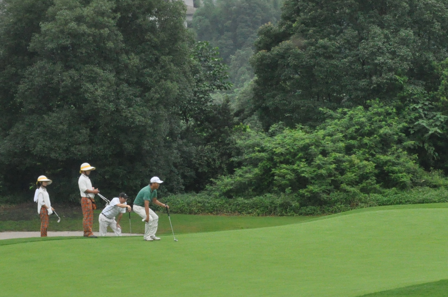 6月10日,2014隆鑫地产杯·重庆高尔夫球队际联赛乙级赛第三轮第一场于上邦球场进行,参赛球队东禾西和球队与鼎致球队早早来场进行热身,虽然暴雨刚过,草坪湿润,但两组队员竭尽所能为球队争光。第二组、第四组、第五组的比赛最为激烈,三组队员均打完18洞,而且比分不相上下,尤其是第二组的比拼更加扣人心弦,前13洞,东禾西和球队赢3洞,鼎致球队赢2洞。在第14、15、16洞的比拼中两队不相伯仲最终打平,在最后2洞的比赛中,鼎致球队奋力一搏连赢两洞,扭转局势,以1洞之险赢得本组比赛,为球队赢得1分。最终鼎致球队以4.5:1.5的成绩赢得比赛。经过两场比赛鼎致球队共积得8.5分,与颐和球队并列暂时领先。