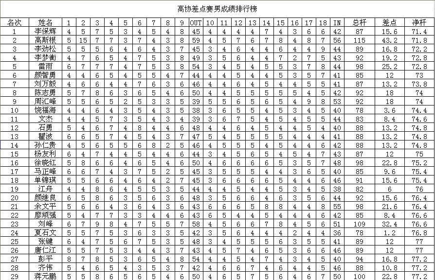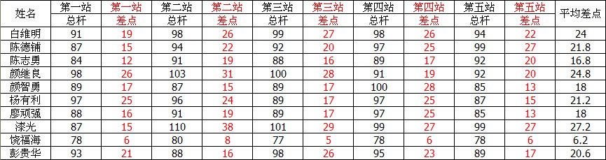 总杆成绩