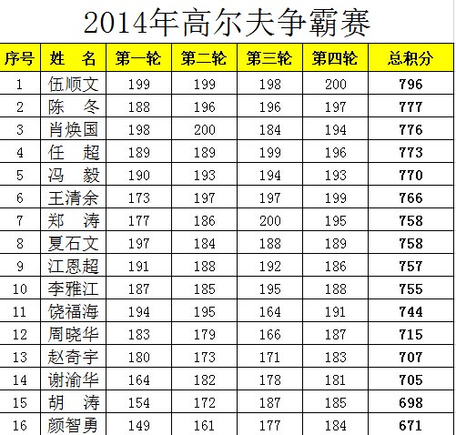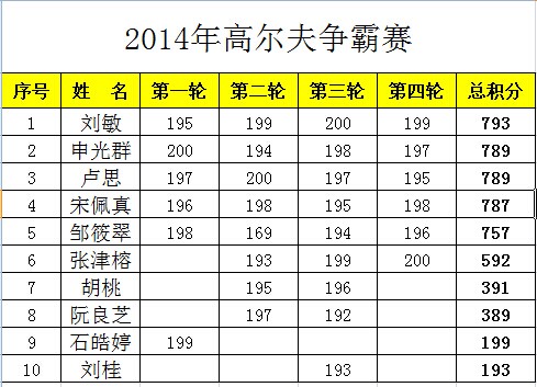 2014重庆市高尔夫球争霸赛总成绩