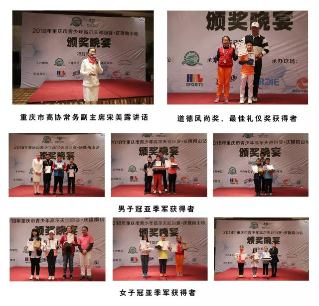 北京时间3月25日,重庆市青少年高尔夫巡回赛,2018年赛季的揭幕站在风景似画的庆隆南山高尔夫球会精彩收官!参赛的人数达到了巡回赛举办两年以来最多的一次。本次赛事分为六个组别共87人,冠军分别属于:吕泓毅(男子C组)、周彦含(男子D组)、夏楚沐(男子E组)、徐子珺(女子C组)、周籽杉(女子D组)、彭严萱(女子E组);孙瑞蔓、唐子昂分别获得道德风尚奖、最佳礼仪奖!