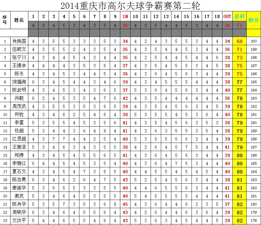 2014重庆市高尔夫球争霸赛第二站成绩