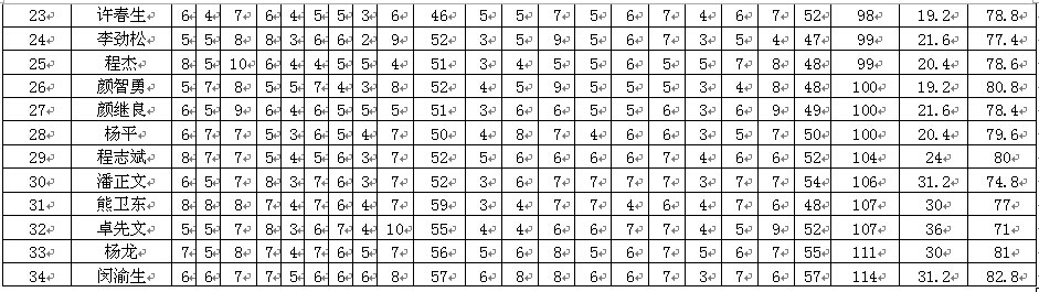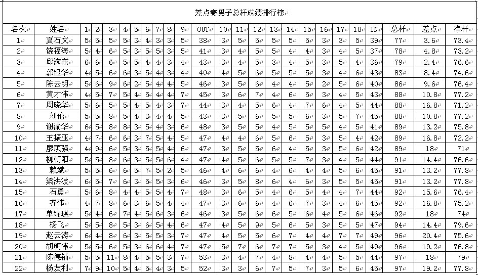 差点赛第五站男子总杆成绩